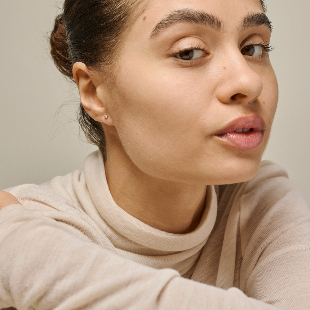 Med en størrelse på ca. 3 mm er Clara Studs en meget fin og minimalistisk ørestik, der stadig tilfører et elegant glimt til øret. Det enkle design gør dem alsidige og lette at style – både alene for et underspillet look eller sammen med andre øreringe i en moderne stacking.