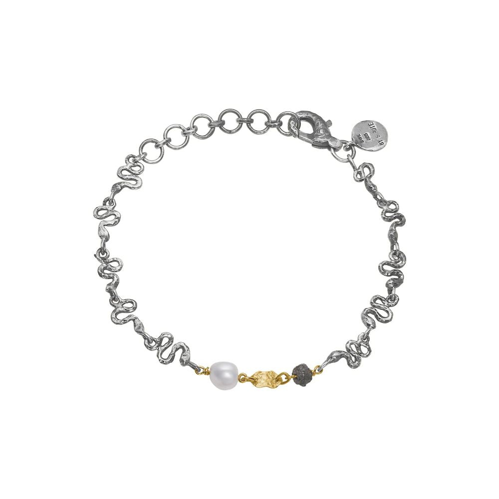 Bybirdie - Sølv armbånd med 14kt guld, rå diamant og perle - 50301333a
