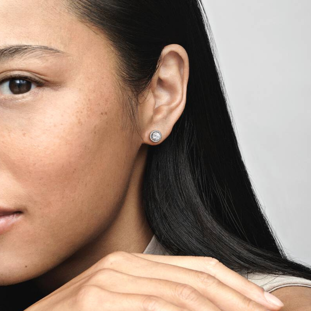 Tilføj et funklende og elegant touch til dit look med disse smukke Pandora ørestikker i sterlingsølv. Hver ørestik har en rund kubisk zirkonia som midtpunkt, omgivet af små pavé-indfattede sten, der skaber et gnistrende udtryk.