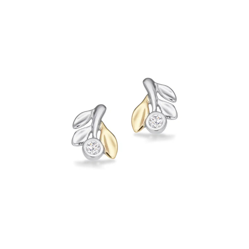 Scrouples Ørestikker i Sølv med 8 Karat Guld Blad og Zirkonia