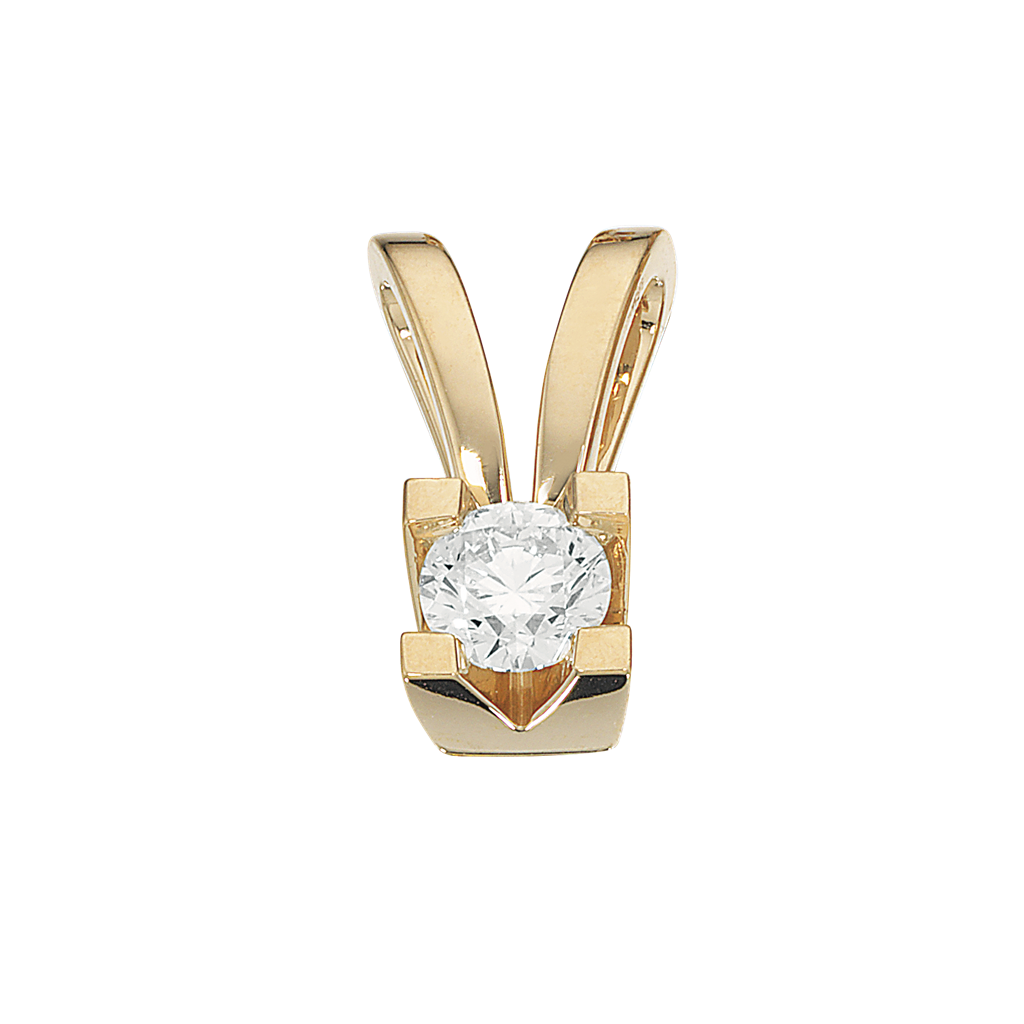 Den naturlige diamant er elegant indfattet i en 4-grabbers fatning, som løfter stenen og sikrer maksimal lysindfald. Det fremhæver diamantens klare spil og gør vedhænget levende og strålende ved enhver bevægelse.