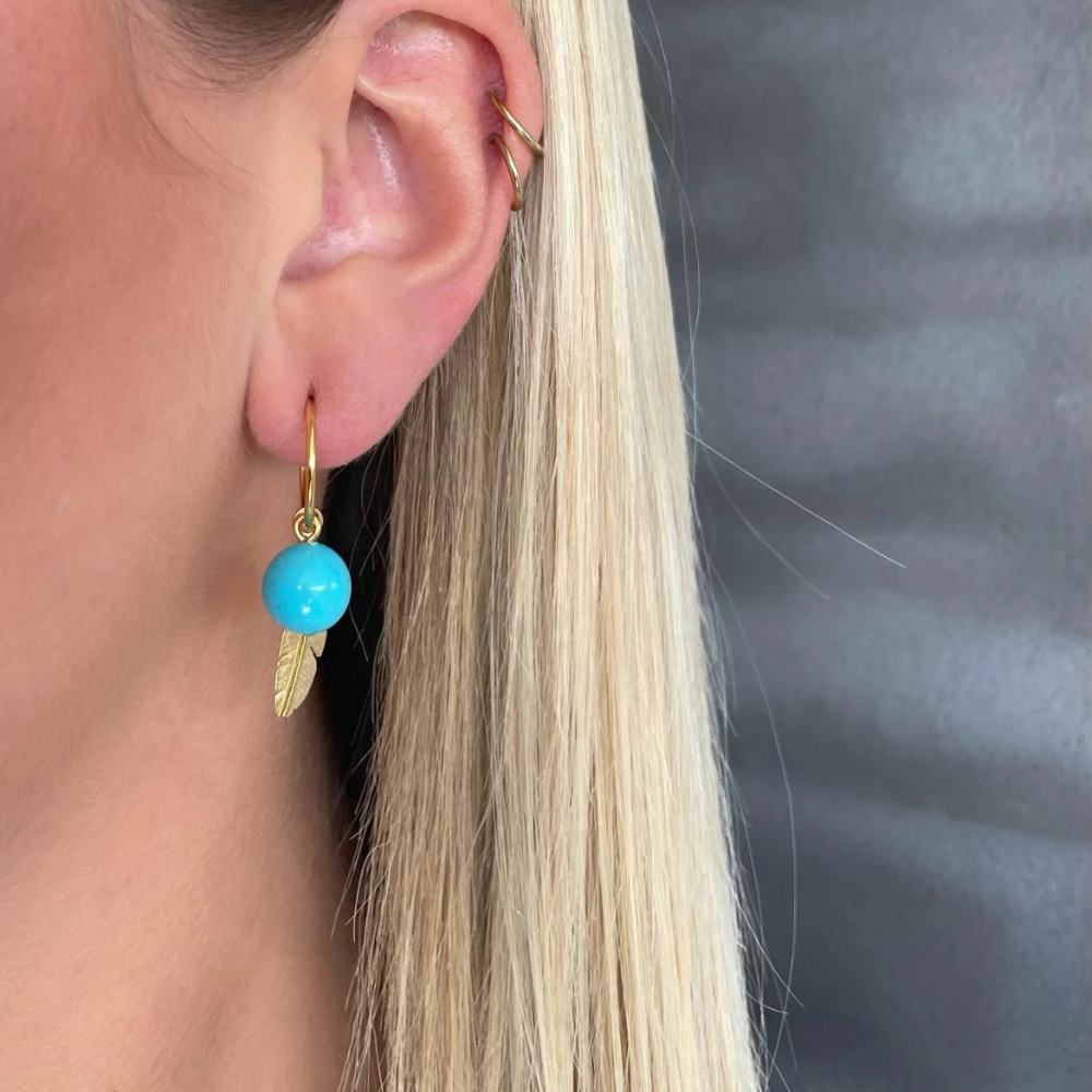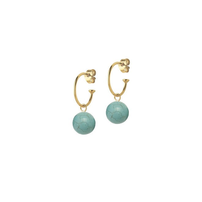 Heiring - Koulè forgyldte øreringe med turkis sten - 53-5-65fg