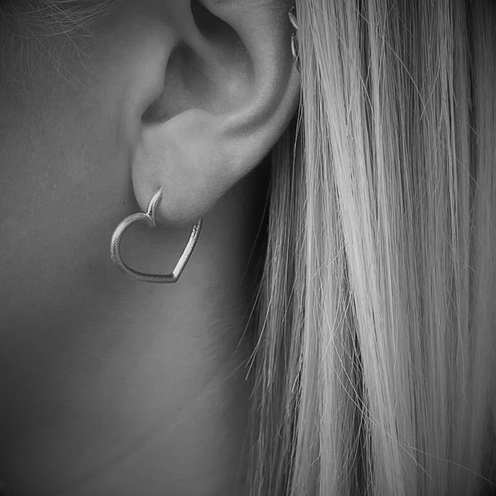 Heiring - Sølv hjerte øreringe med matteret overflade - 53-6-01-rh