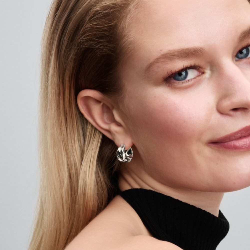 Pandora - Sølv creoler med blank poleret rustik overflade - 293874c00