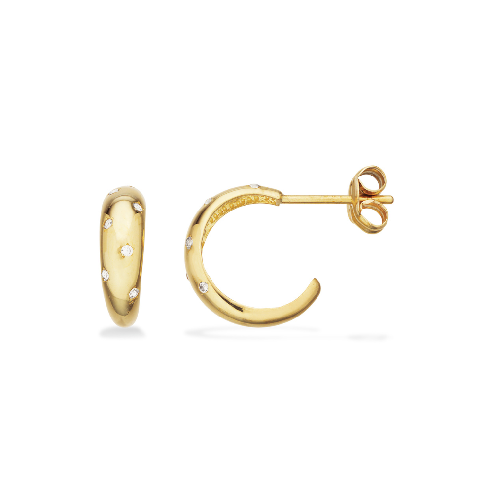 Scrouples - 8 karat guld måneformet creoler med sten af zirkonia - 123023
