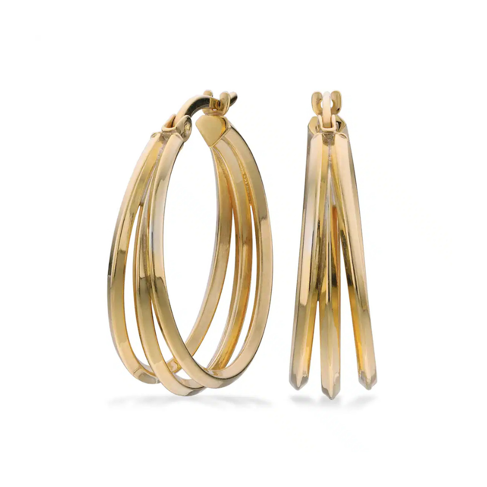 Scrouples - Trippel tråd creoler i guldbelagt sølv - 154902