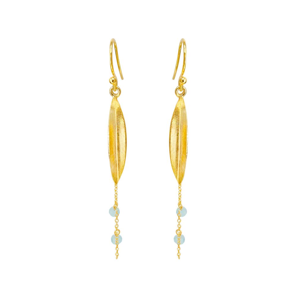 SFB - Forgyldte øreringe med amazonit og blad - 5721-2-137