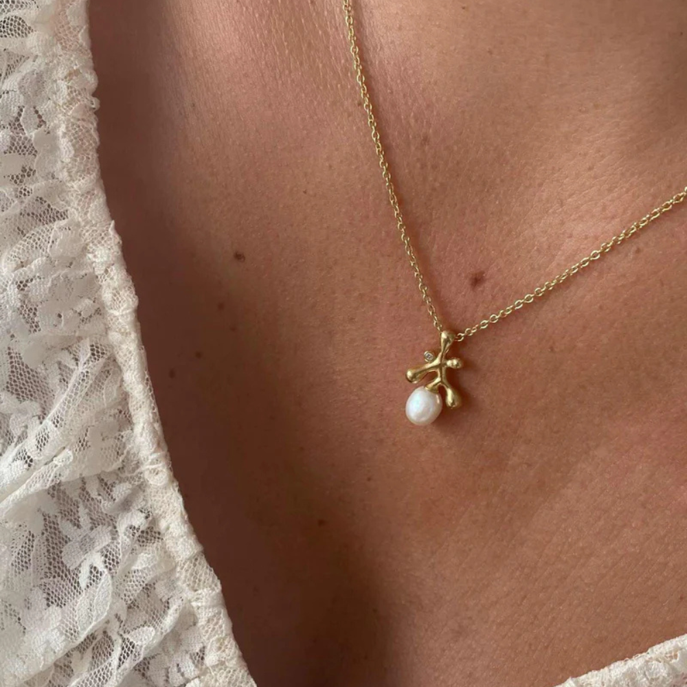 Smukt og organisk – dette FLOREA vedhæng fra Heiring er inspireret af den danske natur og forener klassisk elegance med naturlig skønhed. Vedhænget er udført i guldbelagt sterling sølv (925) og prydet med en 8 mm barok ferskvandsperle, der med sine unikke former gør hvert smykke helt særligt. Som ekstra detalje er der indfattet en brillant på 0,02 ct., der tilfører et diskret, men smukt glimt.