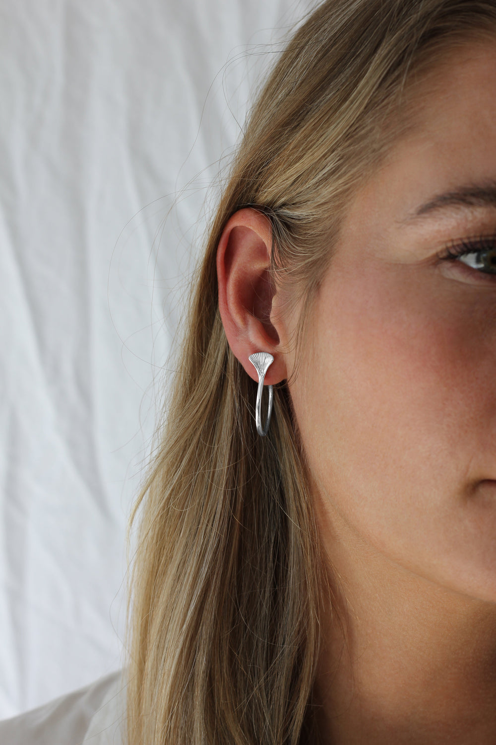 Kaya kollektionen er inspireret af naturens organiske former, og disse øreringe er ingen undtagelse. Med en diameter på 20 mm er de både iøjnefaldende og elegante, perfekte til både hverdag og festlige lejligheder. De rillede vifter fanger lyset på smukkeste vis og giver en legende lethed til smykket.