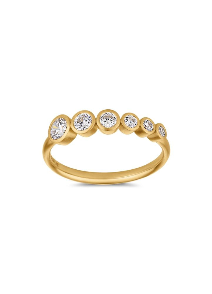 Tilføj et elegant sparkle til dit look med Stardust Flow ringen fra byBiehl. Ringen er fremstillet i 14 karat forgyldt sterling sølv og dekoreret med ni zirkonia-sten i forskellige størrelser, arrangeret fra den største til den mindste for et smukt, flydende design.