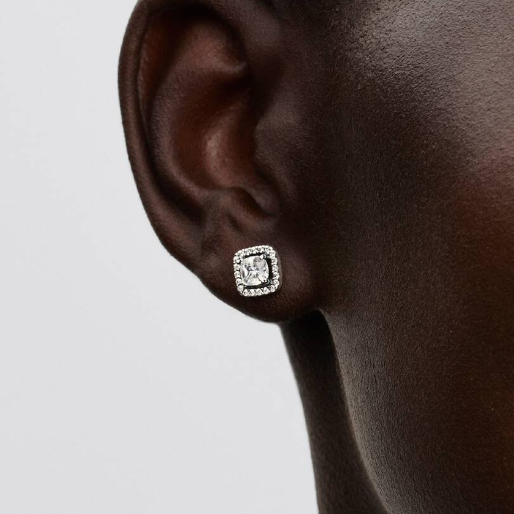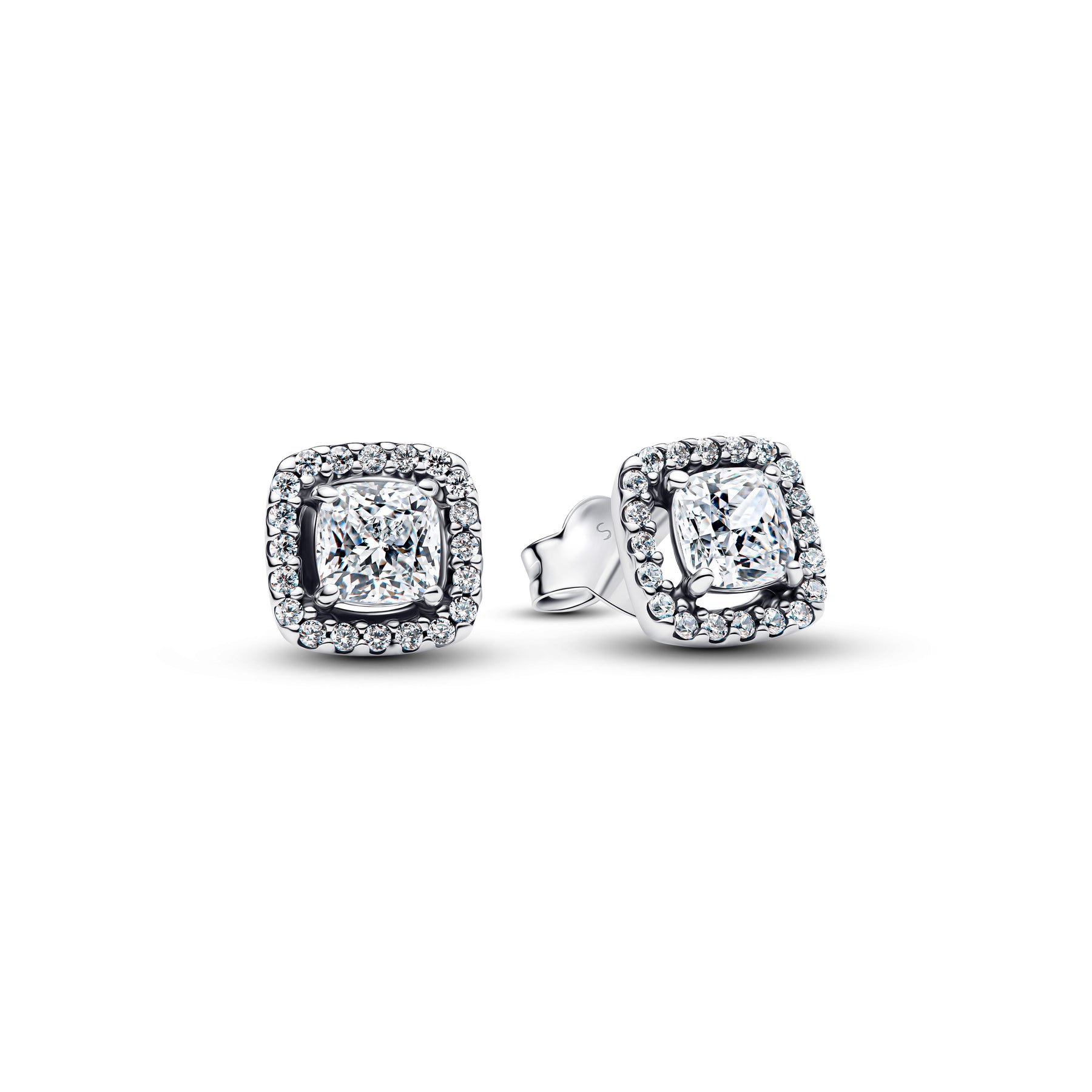 Tilføj et tidløst og funklende touch til din stil med disse elegante Halo Ørestikker fra Pandora. Øreringene er fremstillet i sterlingsølv og har en firkantet klar zirkonia sten i midten, som reflekterer lyset smukt. Rundt om midterstenen er en krans af pavé-isatte klare zirkonia sten, der skaber et glitrende udtryk.