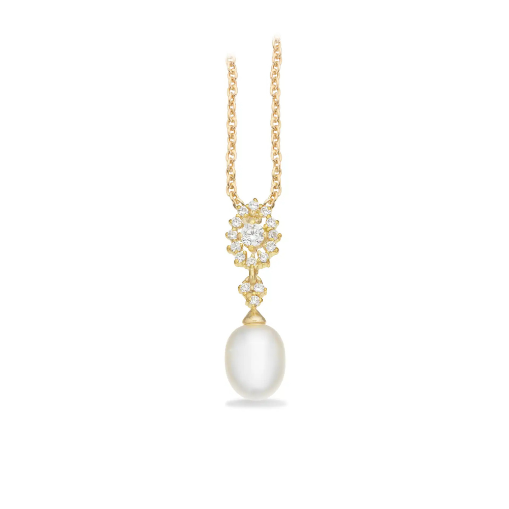 Halskæde med Ferskvandsperle og Zirkonia – Forgyldt Sølv | Scrouples