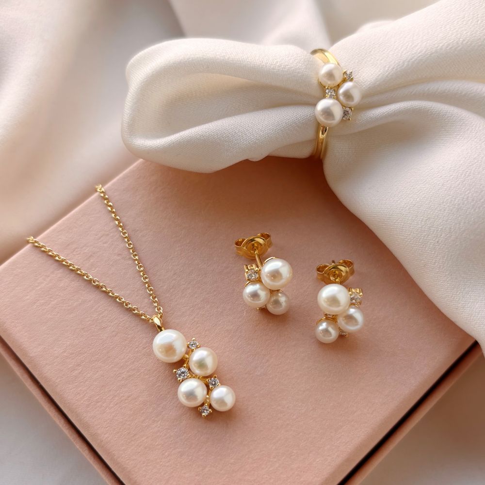 Studio Z - Perma forgyldte sølv øreringe med perler - 7203935